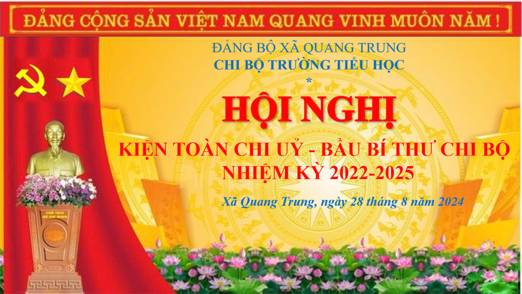 🌺Được sự nhất trí của Ban thường vụ đảng uỷ xã Quang Trung, chiều ngày 28/8/2024, chi bộ trường Tiểu học Quang Trung long trọng tổ chức Hội nghị “Kiện toàn cấp uỷ- Bầu bí thư chi bộ nhiệm kì 2022-2025”