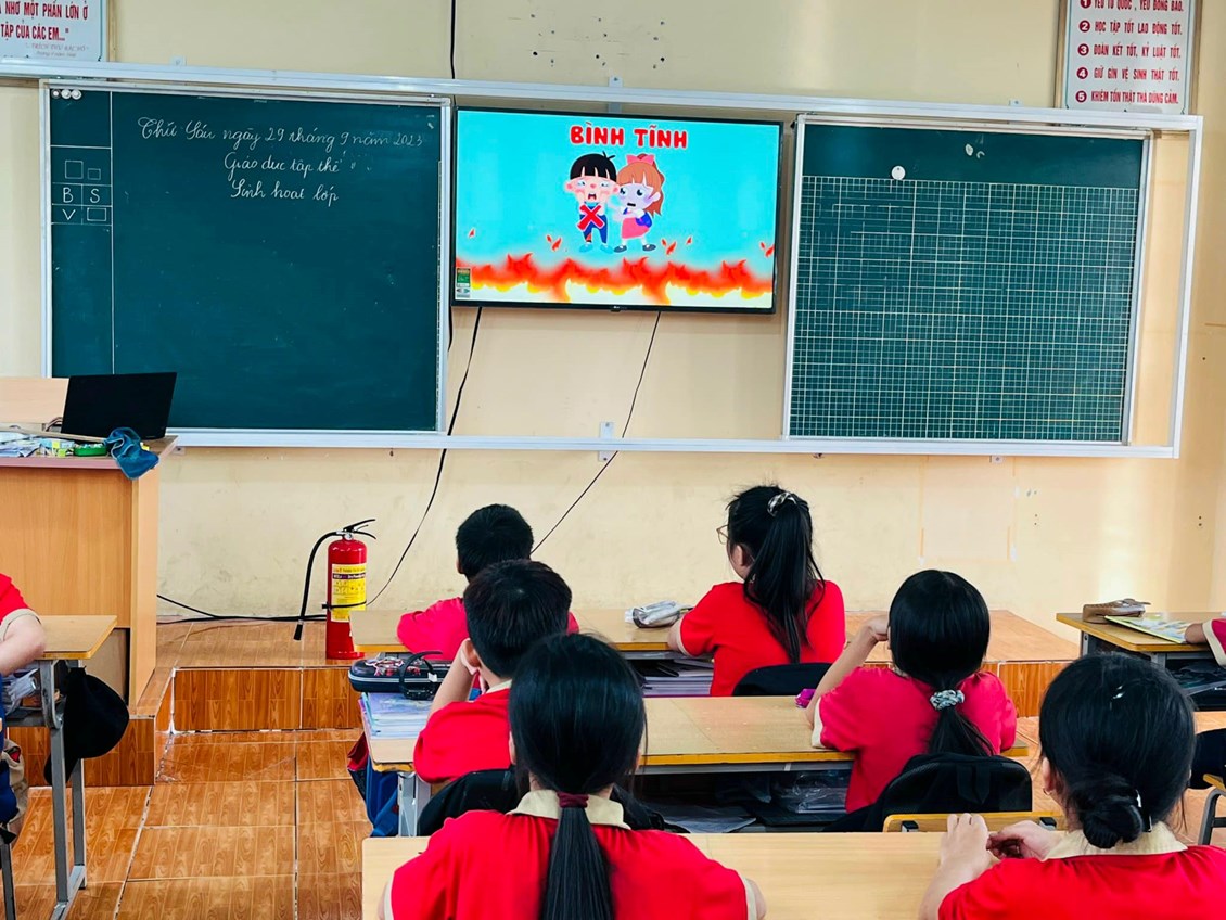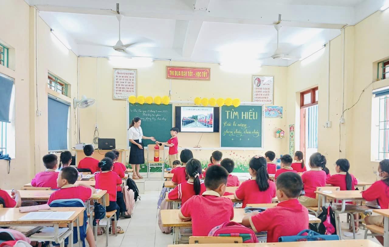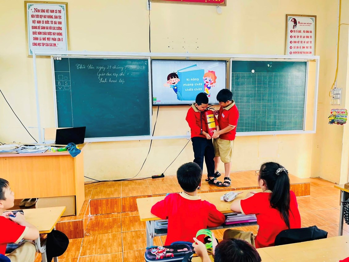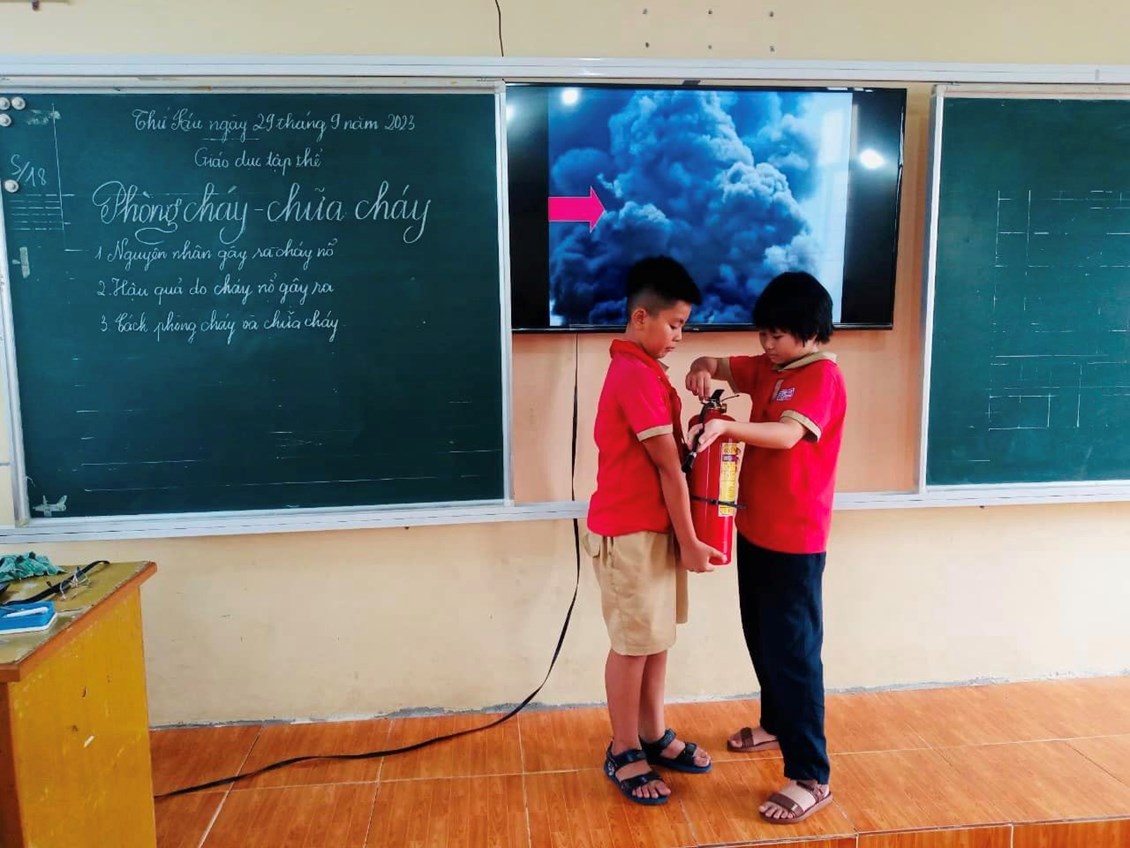 Để giúp các em học sinh và toàn thể CBGV, NV trong nhà trường nâng cao hiểu biết hơn về công tác PCCC, ngay trong những tuần đầu tiên của năm học, BGH nhà trường đã tuyên truyền tới cán bộ giáo viên và các em học sinh về công tác PCCC. Trong các tiết học KNS, SHTT, hoạt động trải nghiệm, các em HS đã được hướng dẫn một số kỹ năng cơ bản xử lý tình huống khi có cháy, kỹ năng thoát nạn trong đám