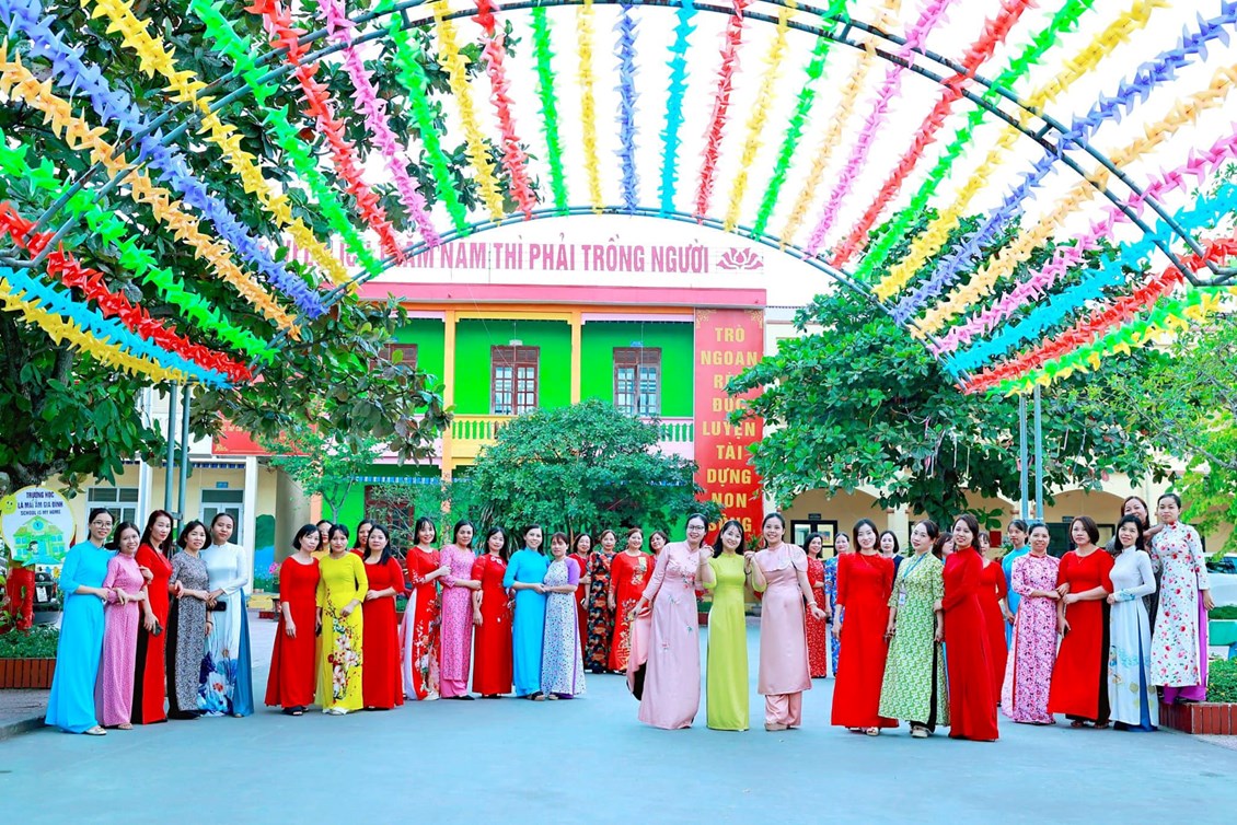 Tại buổi lễ tập thể CBGV đã được nghe diễn văn kỉ niệm , ôn lại truyền thống tốt đẹp của người phụ nữ. Phát động nữ CBGV NV thực hiện pháp lệnh dân số, tổng hợp đăng kí sinh con năm học 2023-2024.