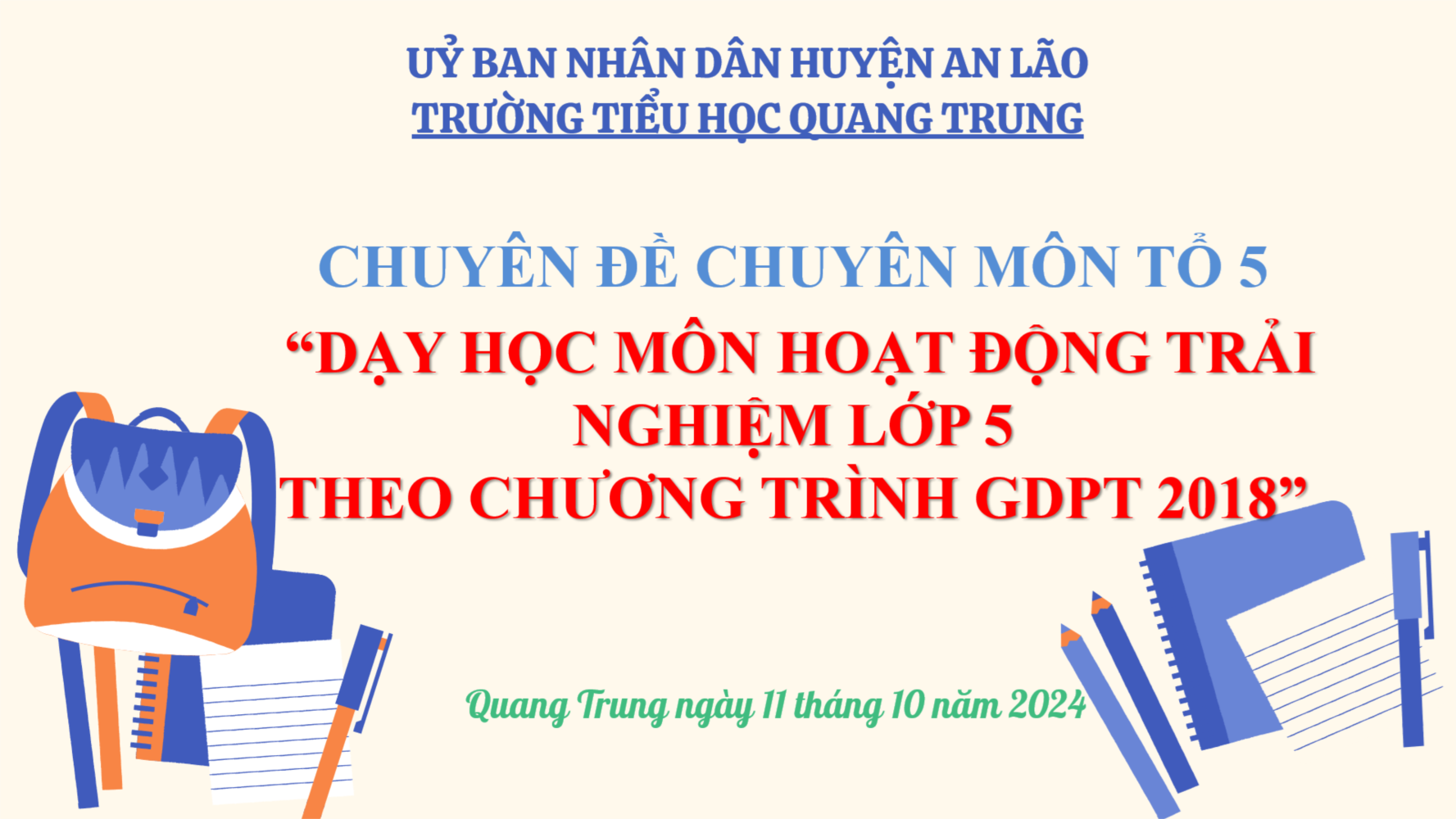 💐Thực hiện kế hoạch nhiệm vụ năm học về công tác chuyên môn của Trường TH Quang Trung, chiều Thứ Sáu ngày 11/10/2024, tổ 5 đã tổ chức chuyên đề chuyên môn “ Dạy học môn Hoạt động trải nghiệm theo chương trình GDPT 2018” với 2 tiết dạy: