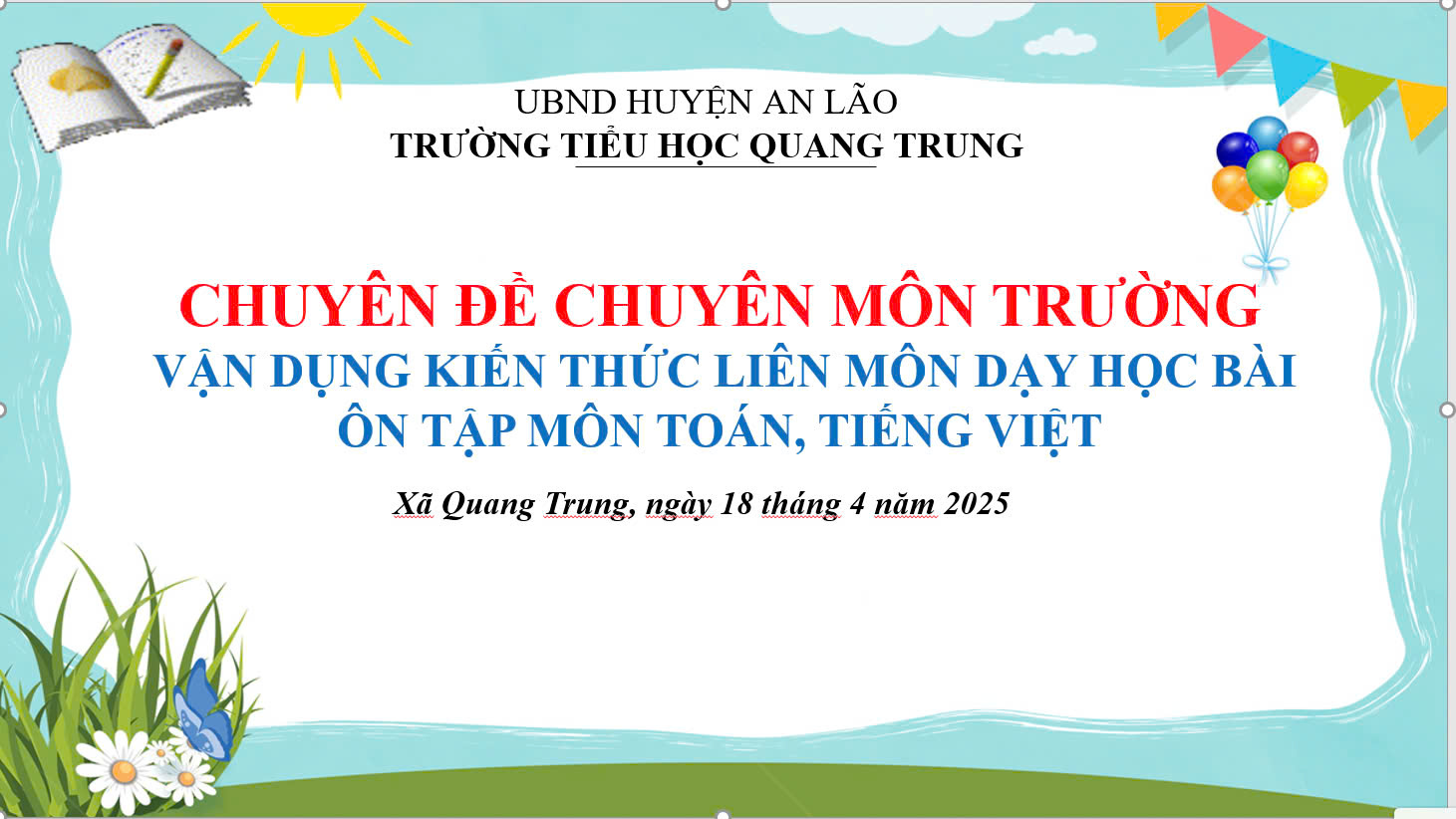 🌸Thực hiện kế hoạch chuyên môn năm học 2024-2025, chiều ngày 18/4/2025, bộ phận chuyên môn trường TH Quang Trung tổ chức chuyên đề trường “Vận dụng kiến thức liên môn dạy học bài Ôn tập môn Toán, Tiếng Việt”