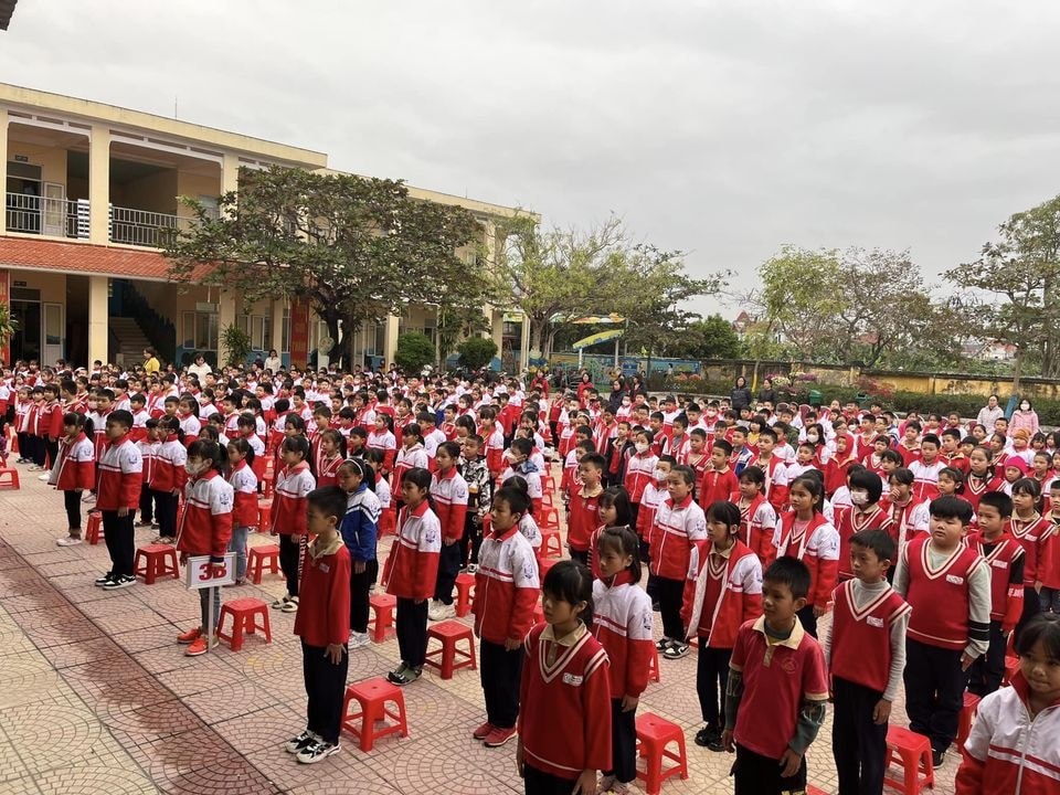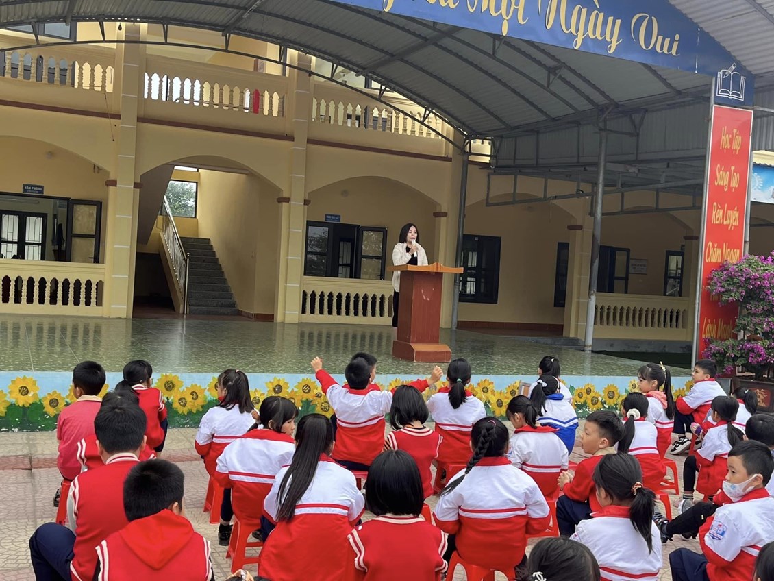 Cũng trong tiết GDTT các em HS được cô giáo Hiệu trưởng Phạm Thị Thanh An biểu dương những thành tích của thầy và trò đã đạt được trong thời gian vừa qua, khích lệ động viên các em học sinh toàn trường tích cực thi đua học tốt học tập noi gương anh bộ đội nếp sống ngăn nắp gọn gàng, kỉ luật, dũng cảm để chào mừng ngày 22/12.