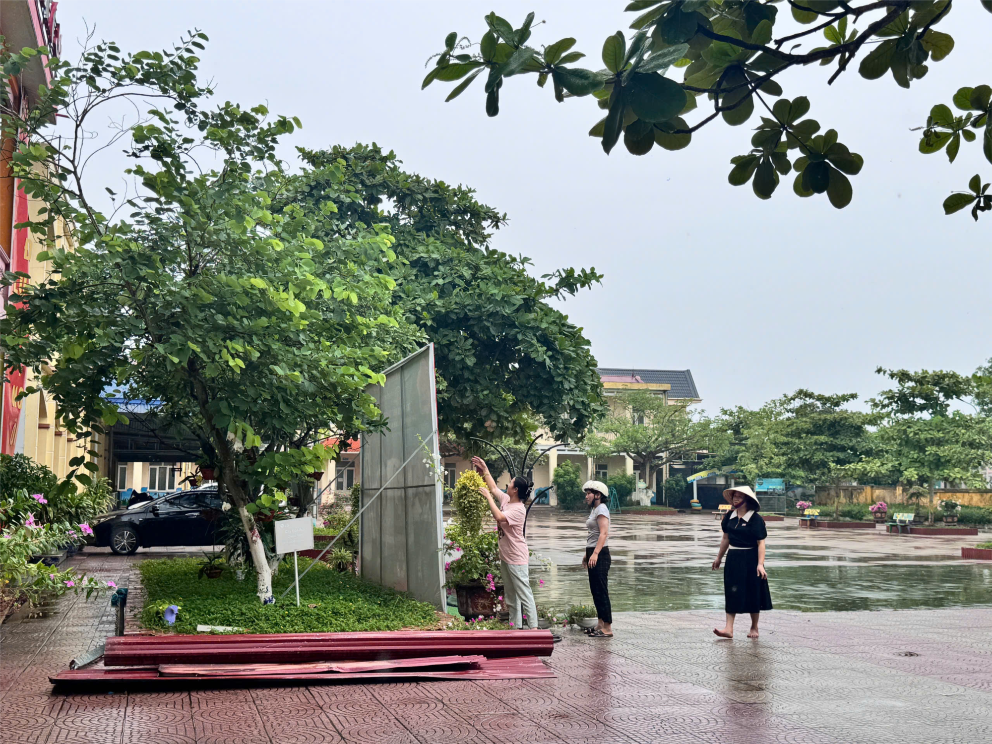 👍Tích cực thực hiện các biện pháp để đảm bảo an toàn cho trang thiết bị, đồ dùng dạy học và cơ sở vật chất của nhà trường, đã tập trung thu dọn khẩn trương toàn bộ cơ sở vật chất (mái nhà, hệ thống cống rãnh, hệ thống điện, hồ sơ sổ sách, trang thiết bị, đồ dùng dạy học và thiết bị điện tử…); chèn chống các phòng học, cửa sổ, cửa ra vào; chặt tỉa những cây cao, to gần vị trí các phòng học và công trình của nhà trường; tập trung khơi thông ách tắc dòng chảy, khơi thông cống rãnh thoát nước để đảm bảo việc tiêu thoát thuận lợi, không để ngập úng cục bộ gây thiệt hại tài sản và ô nhiễm môi trường...
