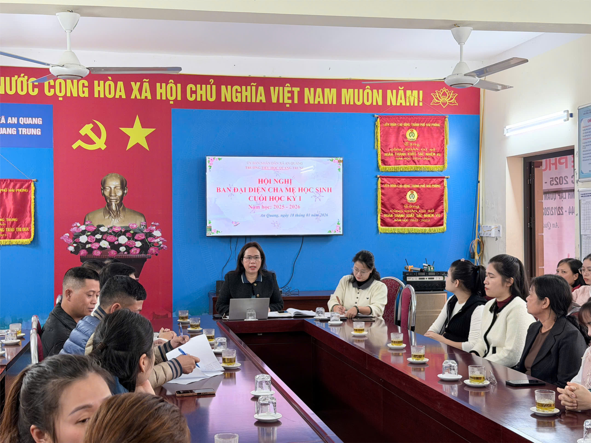 🎯 Hội nghị kết thúc với sự nhất trí cao. Ban đại diện cha mẹ học sinh gửi gắm kỳ vọng vào kết quả học tập, rèn luyện của học sinh trong học kì II, đồng thời khẳng định sẽ tiếp tục phối hợp, đồng hành cùng nhà trường trong việc chăm lo, nâng cao chất lượng giáo dục, góp phần xây dựng Trường Tiểu học Quang Trung ngày càng ổn định và phát triển bền vững trong năm học 2025–2026.