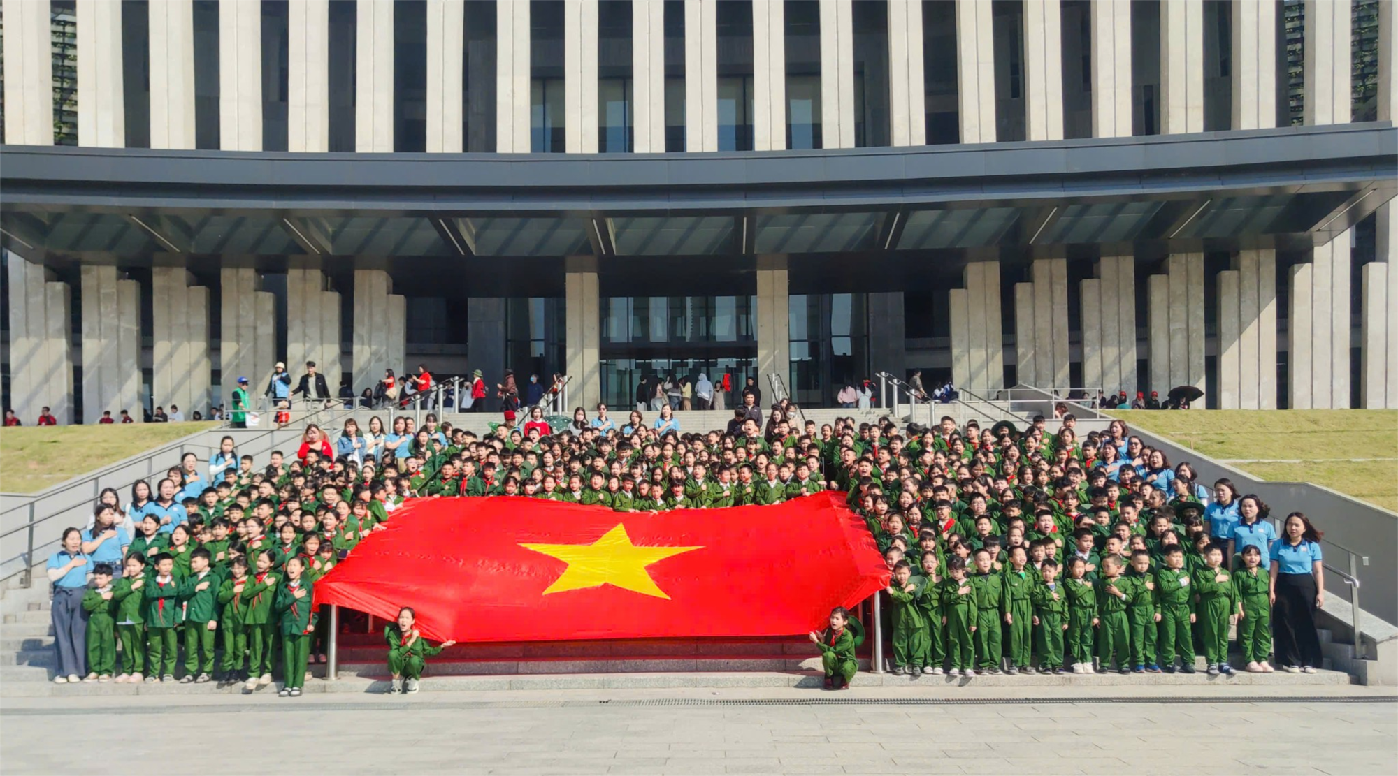 ⭐ Giữa không gian lịch sử thấm đẫm tinh thần quật cường, tiếng hát “Đoàn quân Việt Nam đi…” vang lên hùng tráng, hòa quyện với nhịp đập tự hào của hàng trăm trái tim nhỏ bé. Mỗi lời ca không chỉ là lời tri ân sâu sắc gửi đến cha anh, mà còn là lời hứa quyết tâm của thế hệ măng non dưới ngọn cờ vẻ vang của Đảng, nguyện tiếp bước cha anh xây dựng đất nước ngày càng đàng hoàng hơn, to đẹp hơn.