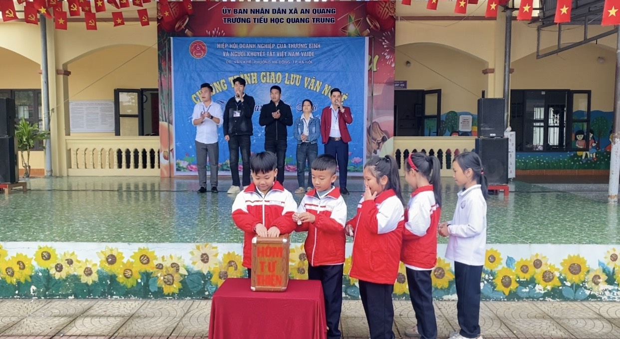 💞 Sáng ngày 5/11/2025, Trường Tiểu học Quang Trung hân hoan chào đón các anh chị đến từ Hiệp hội các doanh nghiệp thương binh và người khuyết tật Việt Nam ( VAIDE). Chương trình giao lưu nghệ thuật mang tên “Thắp sáng ước mơ” – một hành trình của âm nhạc, yêu thương và sẻ chia.