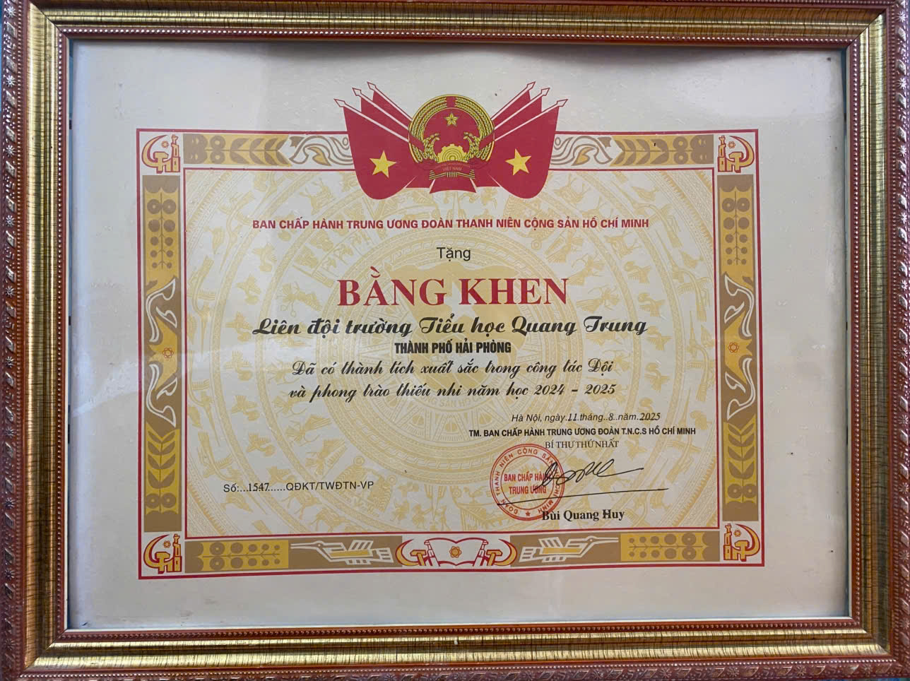 💐Bằng khen của Trung ương Đoàn là một sự ghi nhận xứng đáng cho những nỗ lực, thành tích mà Liên đội trường Tiểu học Quang Trung đã đạt được. Đây không chỉ là niềm tự hào của nhà trường, liên đội, các em học sinh mà còn là nguồn động viên lớn lao để các em tiếp tục phấn đấu vươn lên trong học tập và rèn luyện. Đồng thời, đây cũng là một minh chứng rõ ràng cho sự phát triển mạnh mẽ của công tác Đội và phong trào thiếu nhi tại trường, là động lực để toàn trường tiếp tục duy trì và phát huy các phong trào thi đua yêu nước trong những năm học tiếp theo.