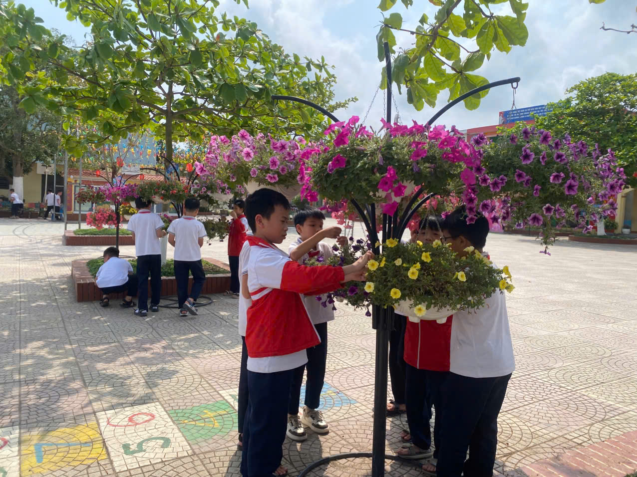 🚮 Không chỉ dừng lại ở đó, các bạn còn tích cực chăm sóc cây xanh. Những hàng cây, bồn hoa, chậu cảnh luôn được tưới nước, nhổ cỏ, nhặt rác thường xuyên nên lúc nào cũng xanh tươi, rực rỡ. Chính bàn tay chăm sóc của các bạn đã góp phần làm cho ngôi trường trở nên gần gũi với thiên nhiên, tràn đầy sức sống.