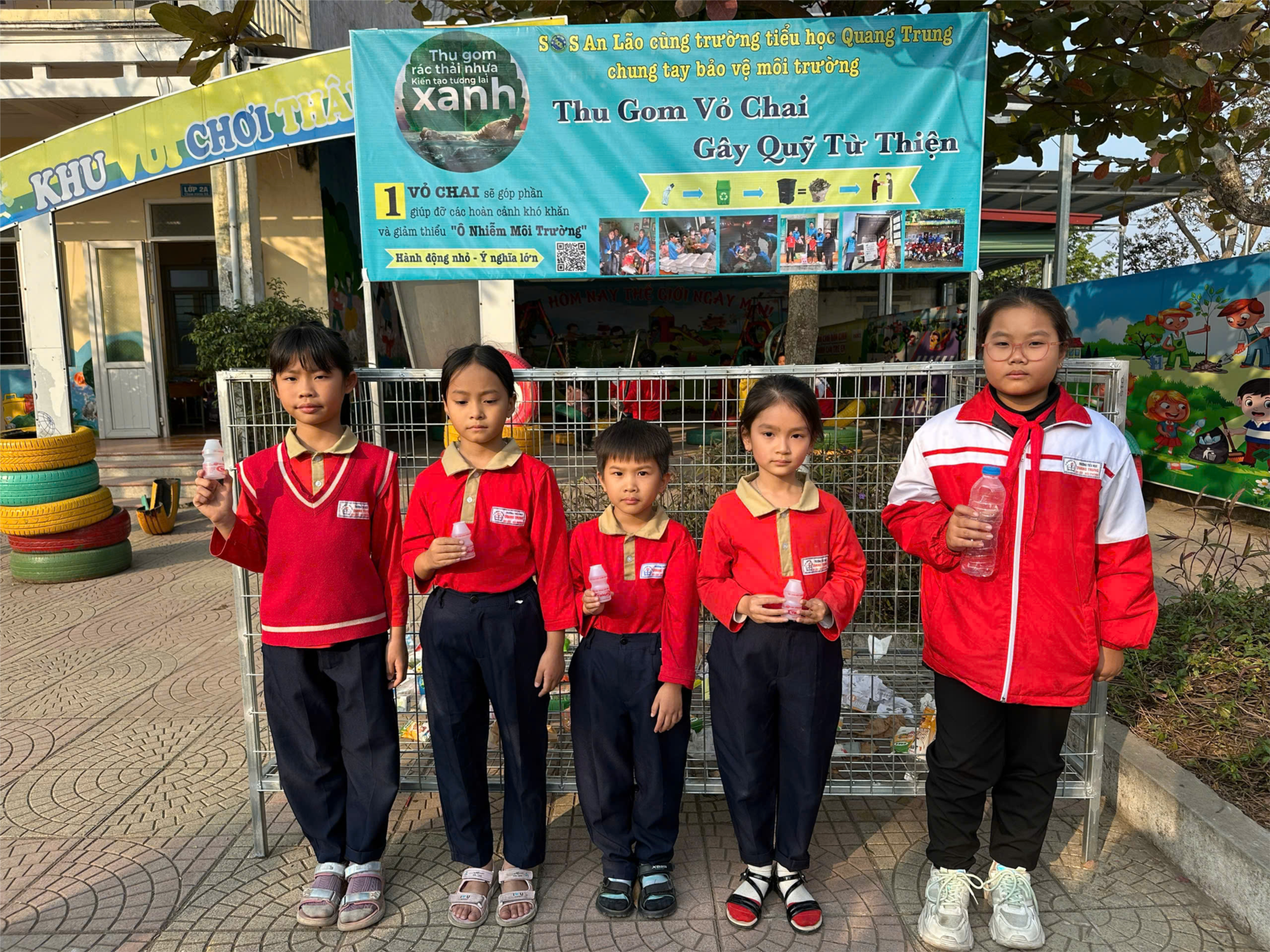 🍀Nhằm nâng cao nhận thức cho các bạn thiếu nhi về bảo vệ môi trường trong nhà trường, góp phần bảo vệ môi trường xanh - sạch - đẹp, giảm thiểu ô nhiễm, trường TH Quang Trung kết hợp với đội thiện nguyện SOS An Lão triển khai phong trào “Chống rác thải nhựa”; đồng thời gây quỹ giúp đỡ các hoàn cảnh khó khăn.