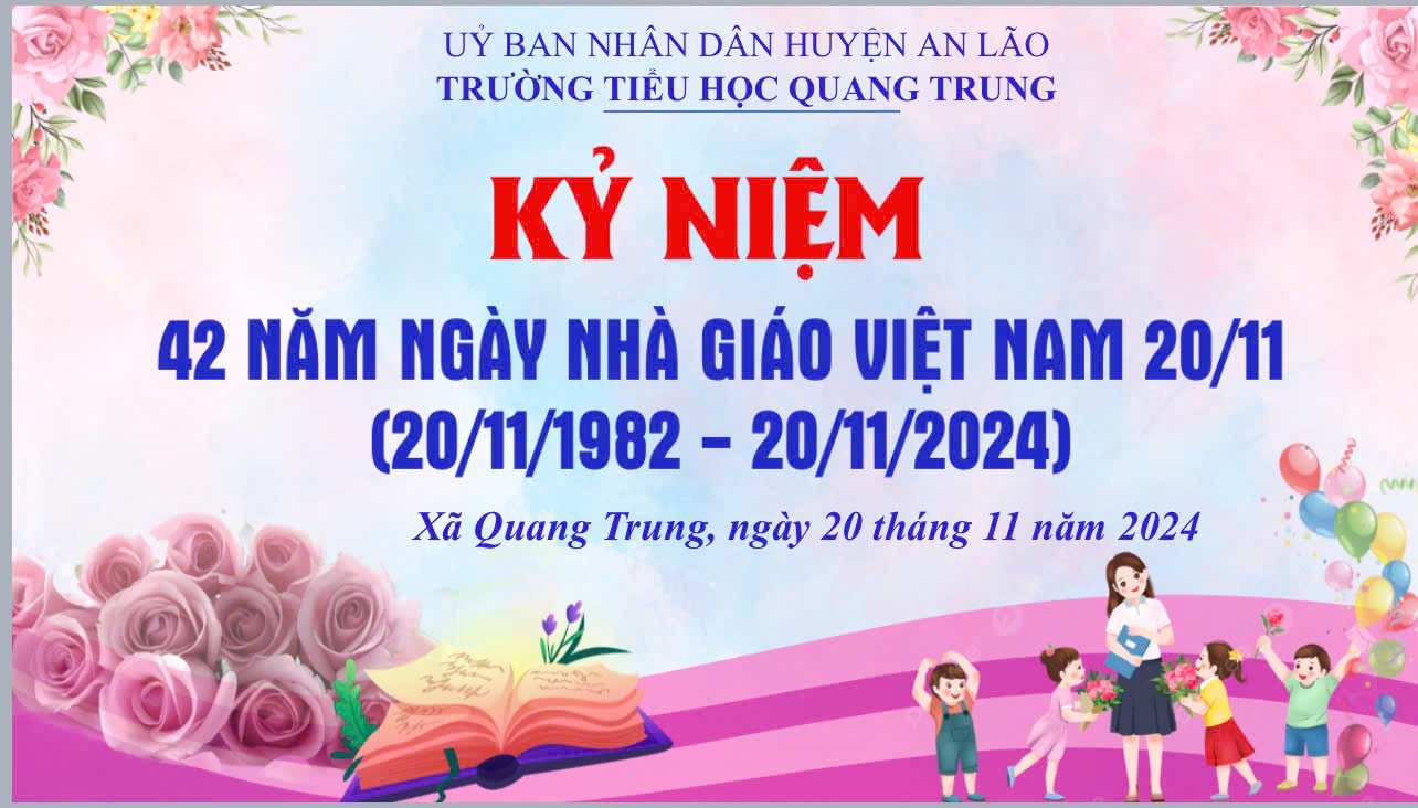 🌸🌸 Trong không khí cả nước náo nức, vui mừng hướng về ngày Hiến chương Nhà giáo Việt Nam, sáng ngày 20/11/2024, Trường tiểu học Quang Trung long trọng tổ chức kỷ niệm 42 năm Ngày Nhà giáo Việt Nam 20/11 (20/11/1982 - 20/11/2024)