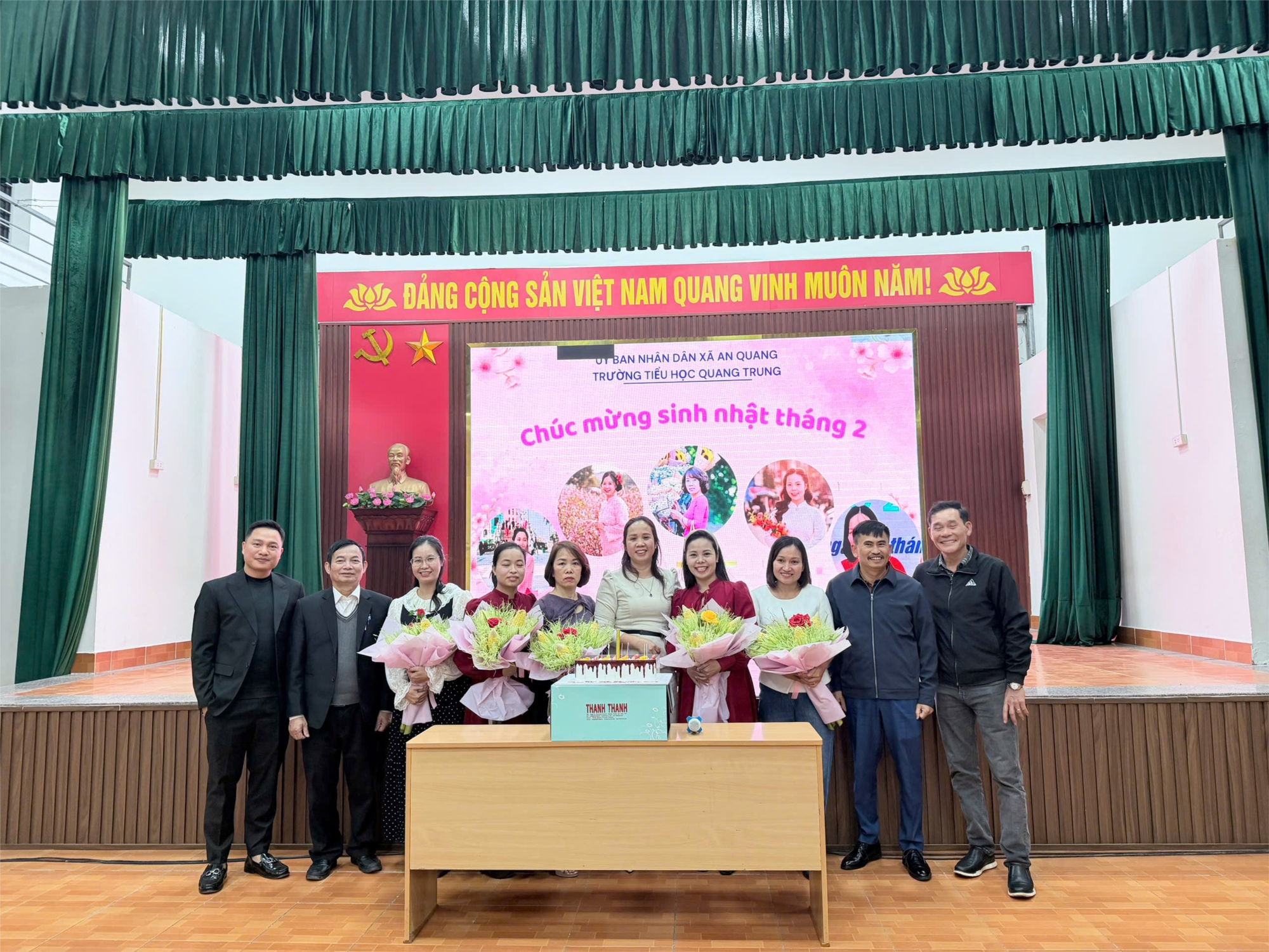 🌷Trong không khí rộn ràng của những ngày đầu xuân mới, tập thể cán bộ, giáo viên Trường Tiểu học Quang Trung vui mừng tổ chức chúc mừng sinh nhật các đồng chí giáo viên có ngày sinh trong tháng 2: Nguyễn Thị Hà, Nguyễn Thị Minh Ngọc, Bùi Thị Thuý Phương, Nguyễn Thị Quyên, Bùi Thị Nhã.