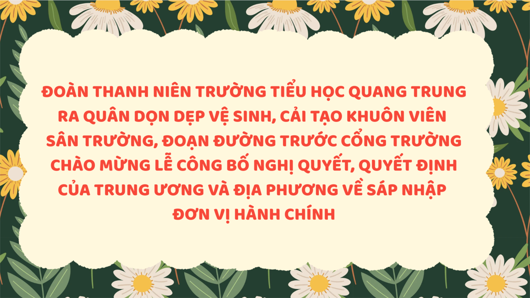 🌺Đây là hoạt động thiết thực thể hiện trách nhiệm, tinh thần tiên phong, gương mẫu của đoàn viên, thanh niên trong việc xây dựng địa phương ngày càng khang trang, văn minh, góp phần tạo khí thế phấn khởi chào mừng Lễ công bố các nghị quyết định của Trung ương và địa phương về sáp nhập đơn vị hành chính.