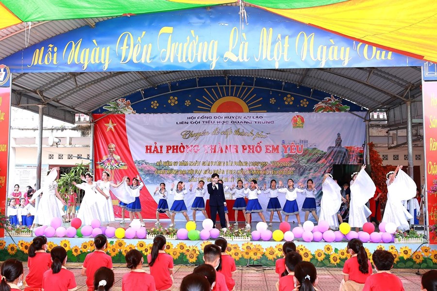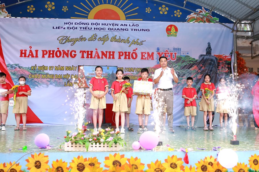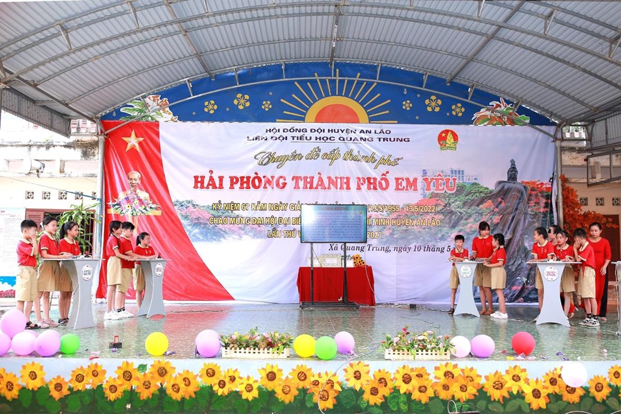 Thực hiện chương trình công tác Đội và phong trào thiếu nhi năm học 2021- 2022. Chào mừng Đại hội Đoàn huyện An Lão lần thứ VIII, nhiệm kỳ 2022-2027; kỉ niệm 67 năm ngày giải phóng Hải Phòng. Hôm nay ngày 10/5/2022, Liên đội Tiểu học Quang Trung huyện An Lão long trọng tổ chức chuyên đề cấp Thành phố “Hải Phòng thành phố em yêu” năm học 2021-2022.