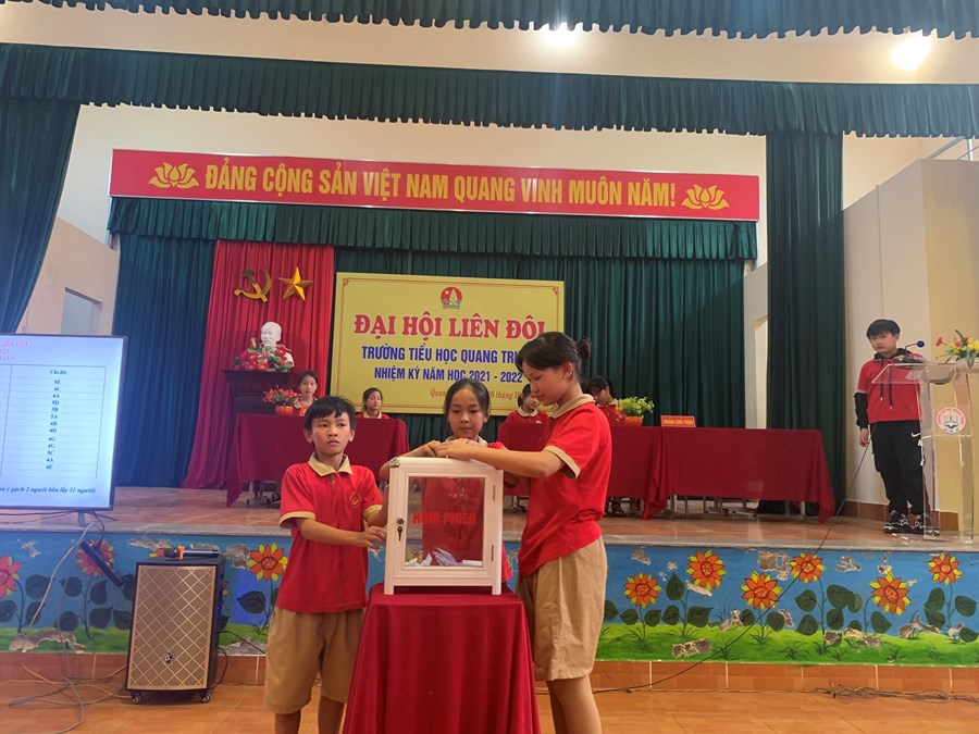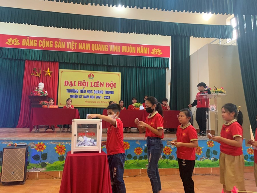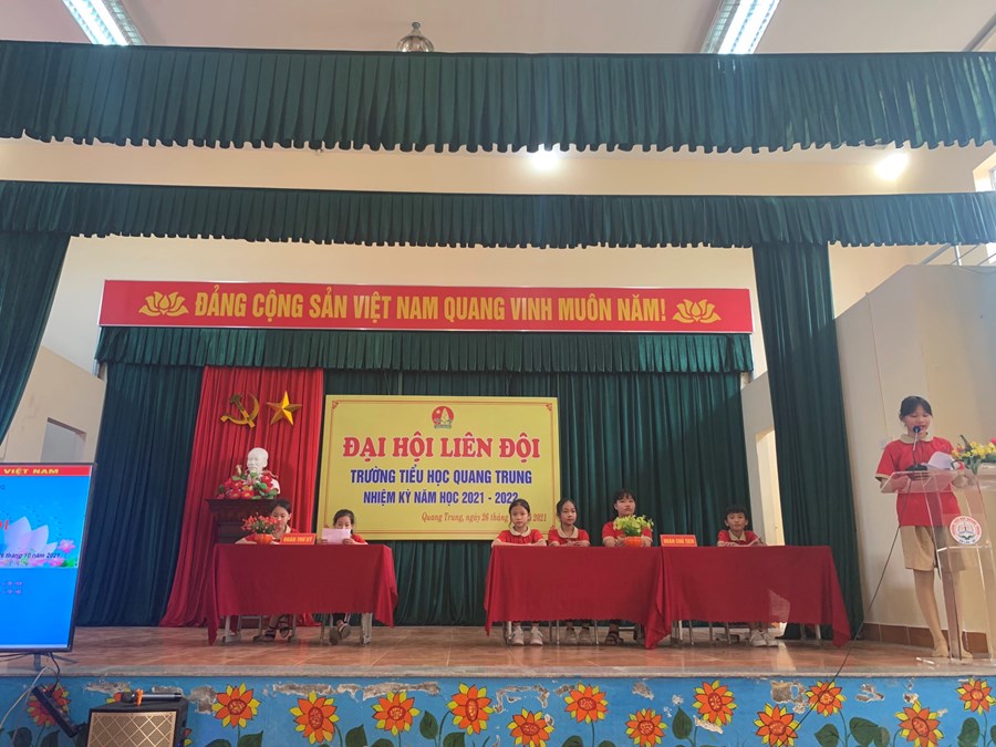 🌈 Thực hiện Chương trình Công tác Đội và phong trào thiếu nhi năm học 2021 -2022, chiều ngày 26/10/2021, Liên đội Trường Tiểu học Quang Trung tổ chức Đại hội Liên đội nhiệm kỳ năm học 2021 - 2022 đã diễn ra trong không khí vui tươi, phấn khởi của các em đội viên nhưng vẫn đảm bảo các yêu cầu về phòng, chống dịch.