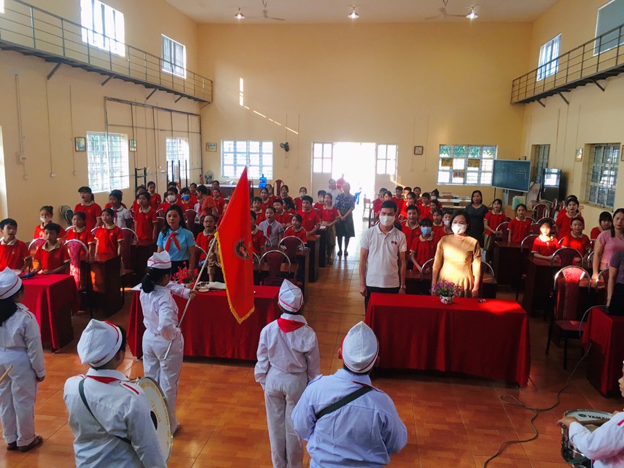 Cùng BCH Chi đoàn, các thầy, cô giáo là chủ nhiệm khối 4,5 cùng 55 đội viên chính thức đại diện cho học sinh khối 4, khối 5 Trường Tiểu học Quang Trung