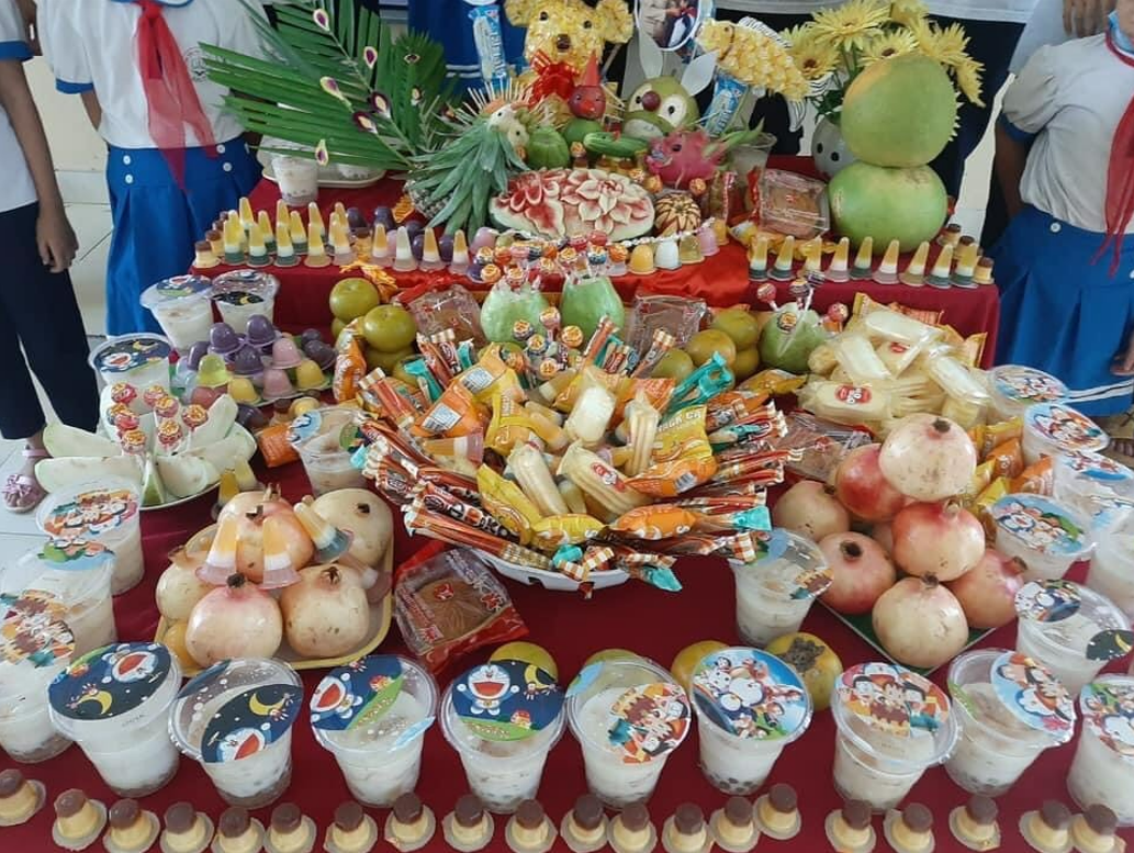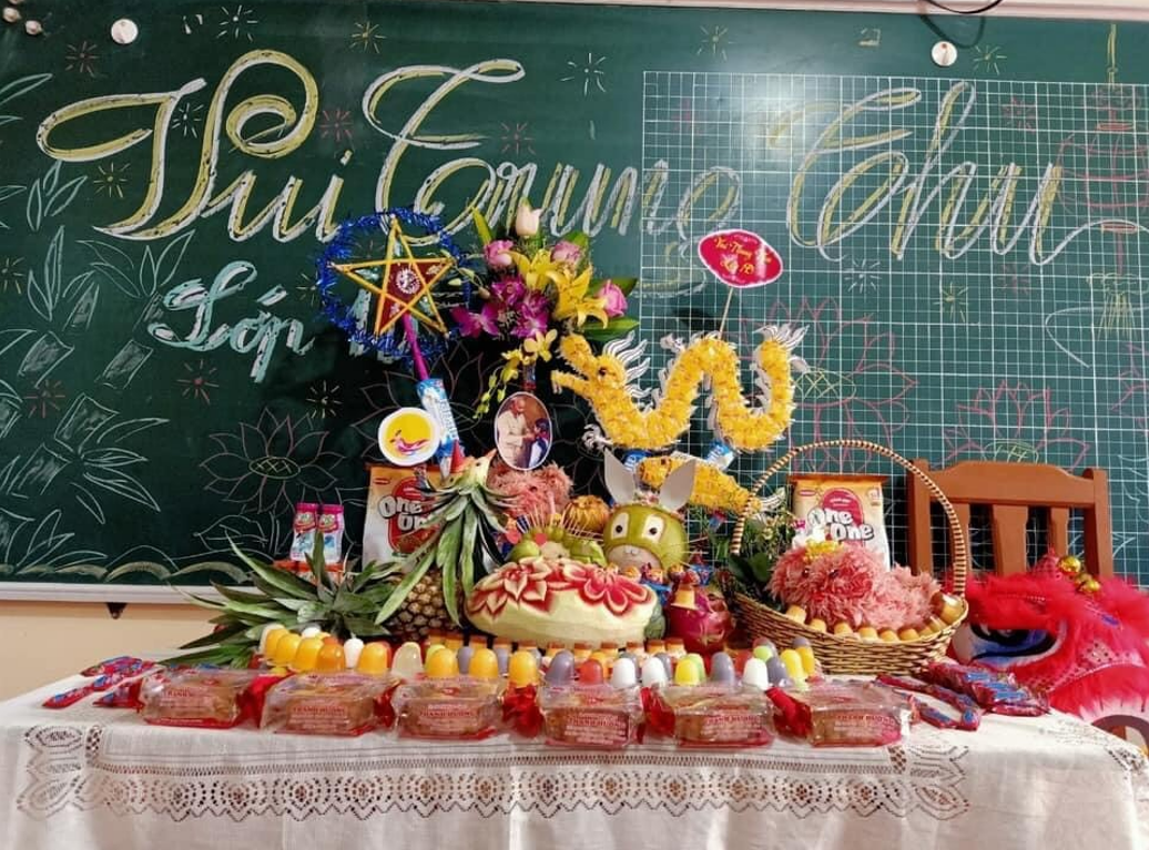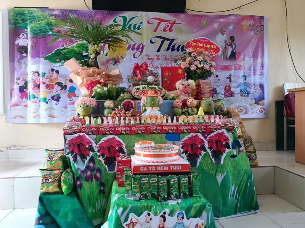Với sự chung tay của các bậc phụ huynh các lớp và Hội cha mẹ học sinh nhà trường, các GVCN đã tổ chức tết thu cho các em ngay trên lớp học. Mỗi lớp đều có một mâm cỗ trung thu đẹp và ý nghĩa do chính các bậc phụ huynh cùng với cô giáo CN trưng bày trang trí đẹp ngon miệng, ngon mắt. Các em học sinh bạn nào cũng vui vẻ phấn khởi khi được vui tết trung thu bên bạn bè và thầy cô. Tiếng cười nói vui vẻ rộn ràng trong các lớp. Nhân dịp tết trung thu nhằm chia sẻ, động viên các em học sinh có hoàn cảnh khó khăn nhà trường và Hội đồng đội huyện An Lão đã tặng trao tặng 15 suất quà cho các em( trong đó 10 suất quà của nhà trường và 05 suất quà của Hội đồng đội huyện An Lão).
