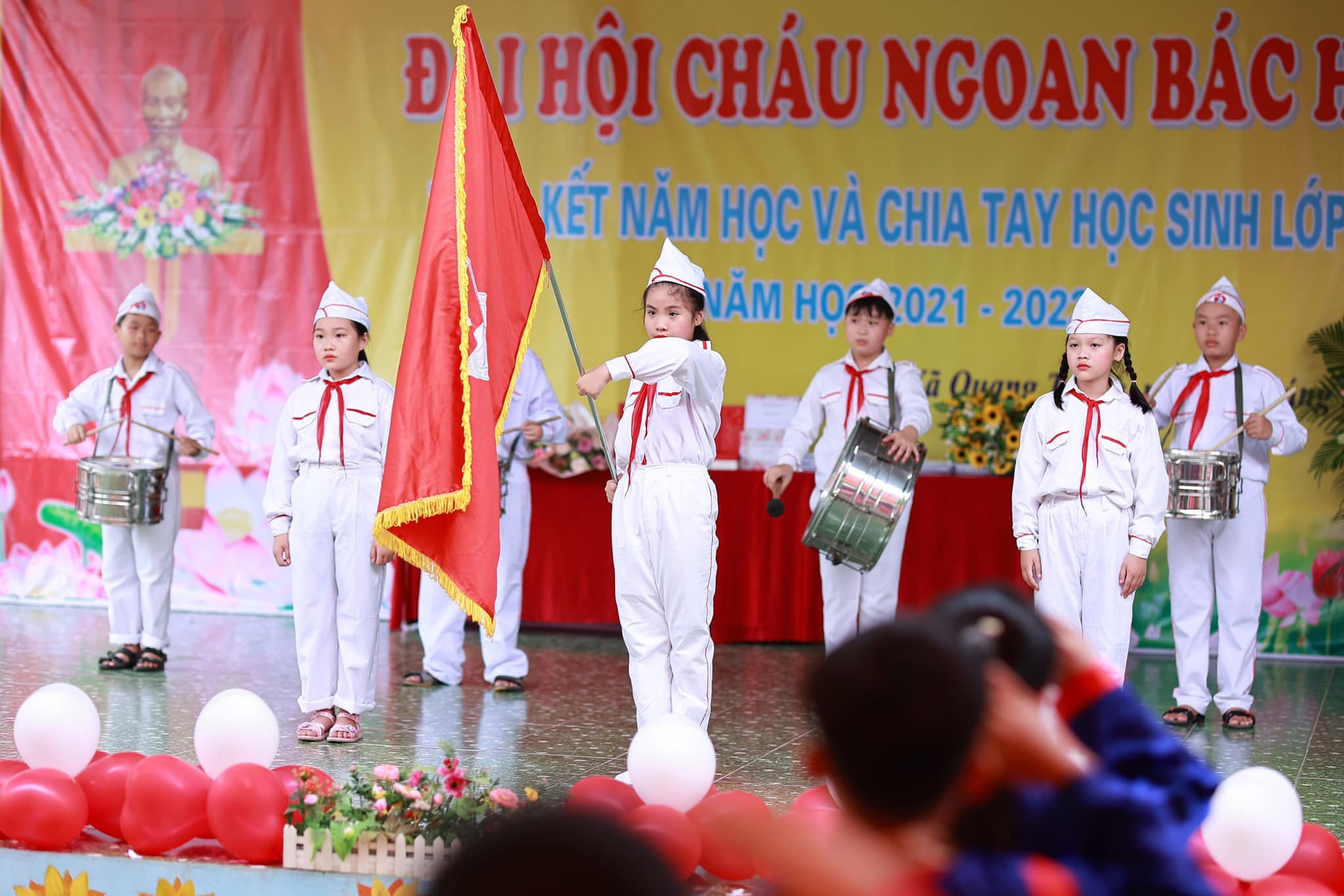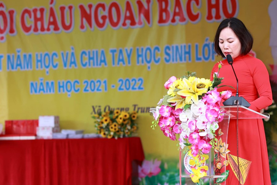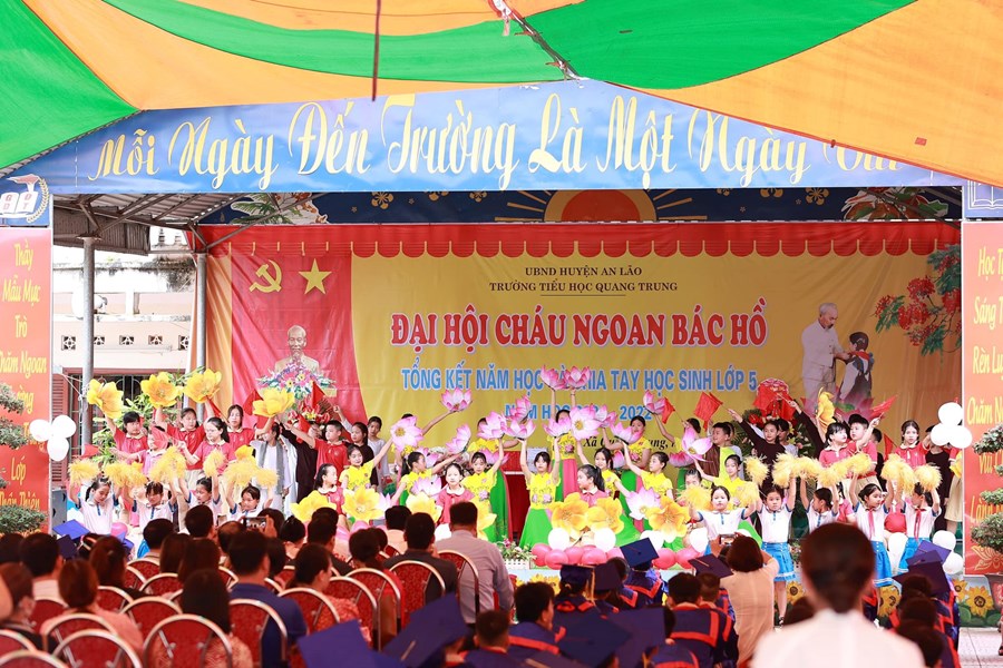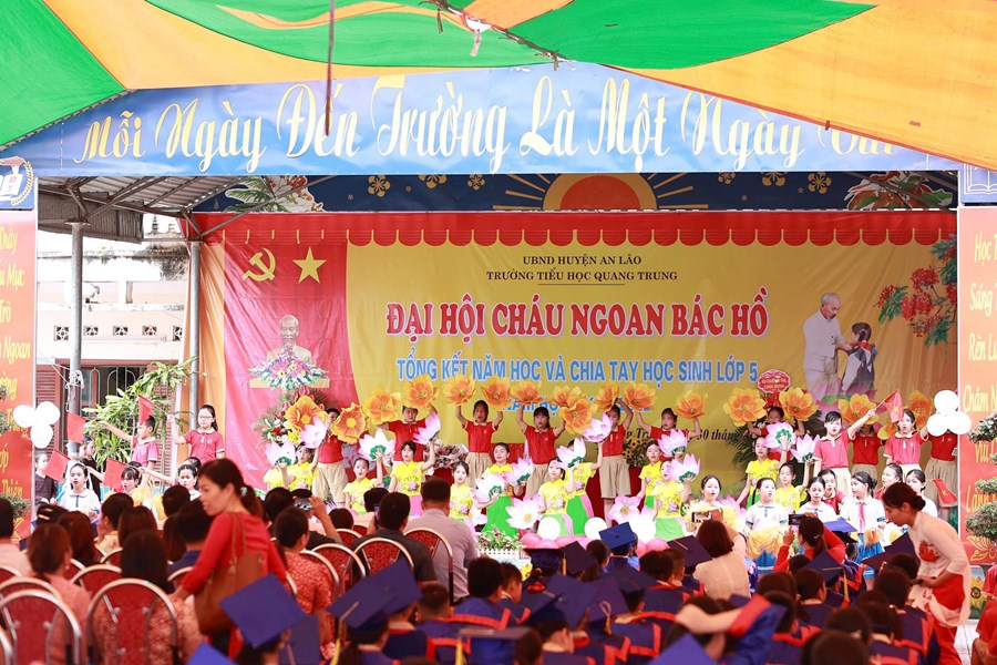 Trong buổi lễ các em HS thiếu niên nhi đồng đã mang lời ca tiếng hát dâng lên Bác Hồ kính yêu với lòng thành kính và biết ơn vô hạn. Với sự cố gắng nỗ lực của thày và trò nhà trường năm học đã thành công tốt đẹp. Trong buổi lễ đã có rất nhiều các tập thể lớp, các em học sinh, các thầy cô giáo có thành tích xuất sắc đã được biểu dương, tôn vinh và ghi nhận.