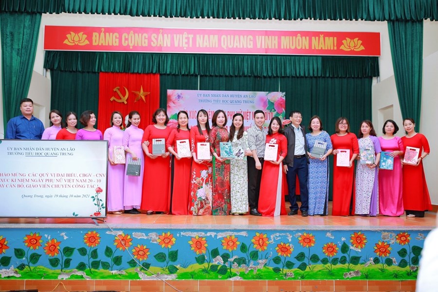 Chiều 19/ 10/2021, được sự nhất trí của Chi bộ, Ban giám hiệu nhà trường – Công đoàn trường TH Quang Trung long trọng tổ chức kỉ niệm 91 năm ngày thành lập HLHPNVN (20/10/1930 – 20/10/ 2021) và chia tay cán bộ, giáo viên chuyển công tác.