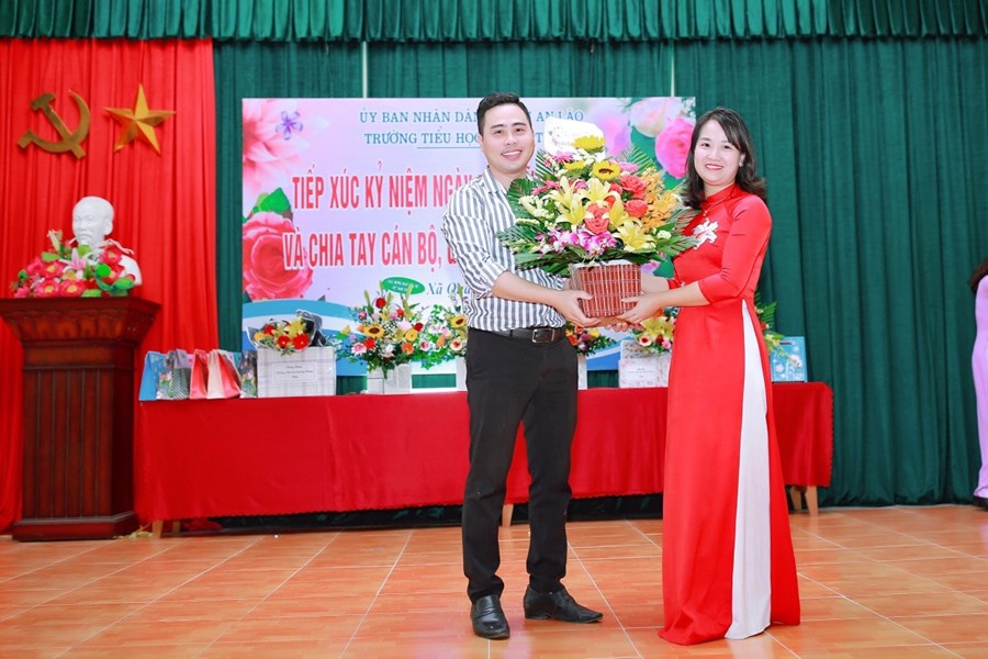 Nhân buổi kỉ niệm ngày 20/10 nhà trường tổ chức gặp gỡ chia tay 2 đồng chí là CB, GV nhà trường: Đ/C Nguyễn Văn Bình- nguyên phó Bí thư -phó HT nhà trường, Đ/C Hoàng Thị Lan Chi- nguyên giáo viên nhà trường. Trong không khí đầm ấm buổi chia tay 2 đc