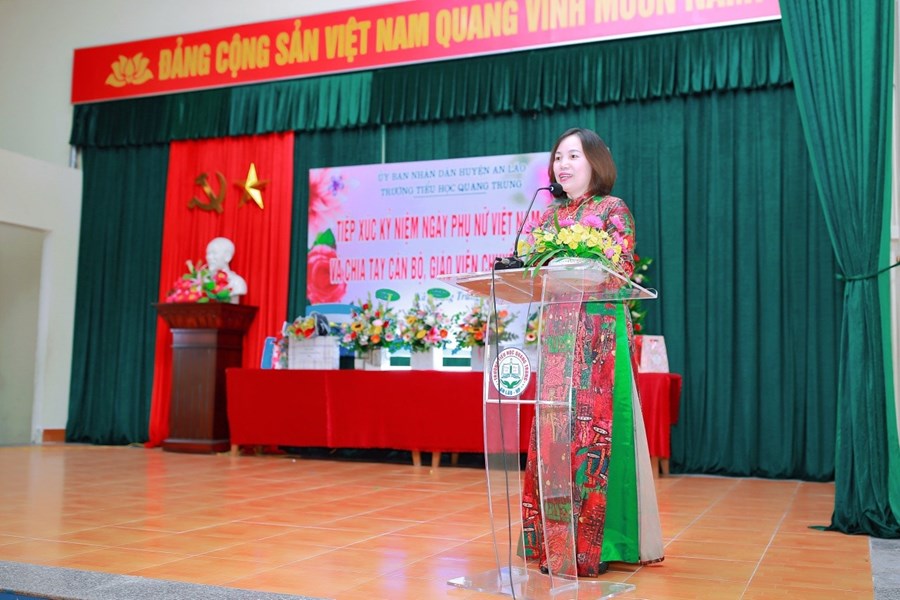 Hội nghị diễn ra trong bầu không khí vui tươi phấn khởi của ngày 20/10 và đây là dịp nữ CBGVNV trường TH Quang Trung khẳng định những đóng góp to lớn của phụ nữ vào quá trình giáo dục và đào tạo những thế hệ học sinh thân yêu và là những người phụ nữ của gia đình. Ở bất kỳ lĩnh vực nào, vị trí nào nữ CBGV, NV Trường TH Quang Trung đều phát huy được truyền thống tốt đẹp của người Phụ nữ Việt Nam, xứng đáng là những người phụ nữ năng động, giỏi việc trường đảm việc nhà trong thời kỳ CNH –HĐH đất nước.