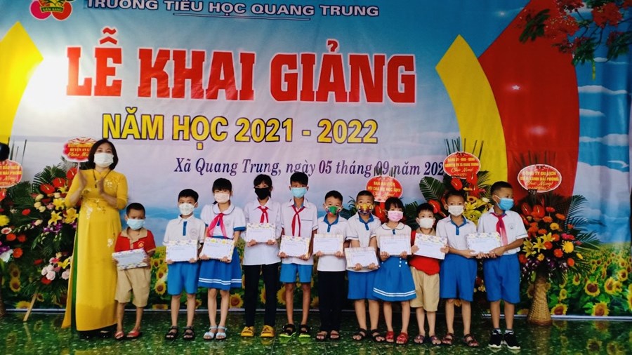 Tại buổi lễ khai giảng nhà trường đã tặng 10 suất quà cho 10 em HS có hoàn cảnh khó khăn mỗi suất quà 10 quyển vở và 300 000đ và đặc biệt trong lễ khai giảng Cô Đặng Thị Phương( FB Phương Phương) đã kết nối các mạnh thường quân chia sẻ yêu thương tặng 5 suất quà cho 5 em học sinh có hoàn cảnh khó khăn mỗi suất quà 10 quyển vở và 500 000đ.