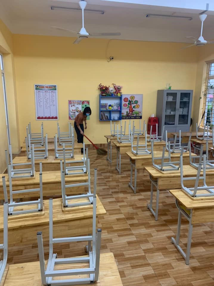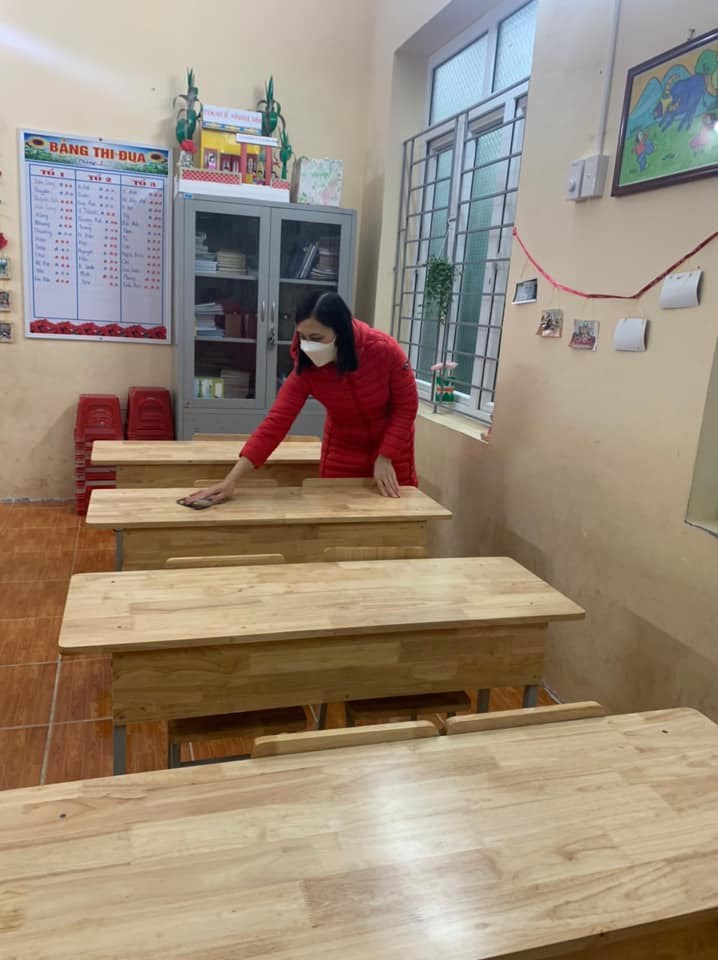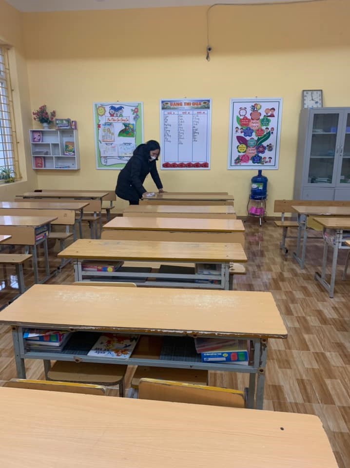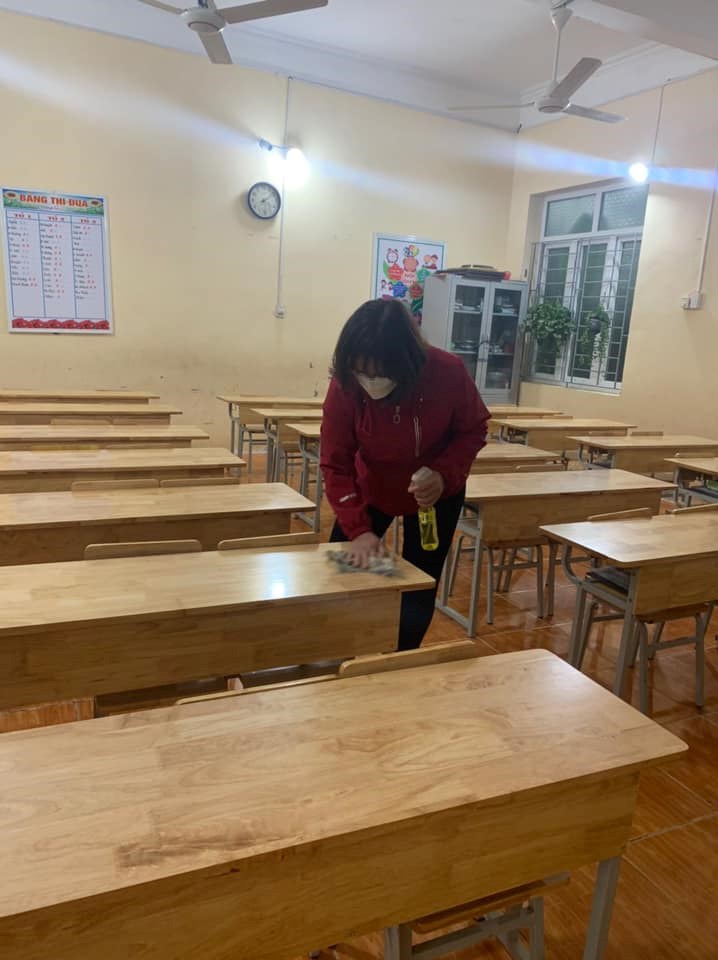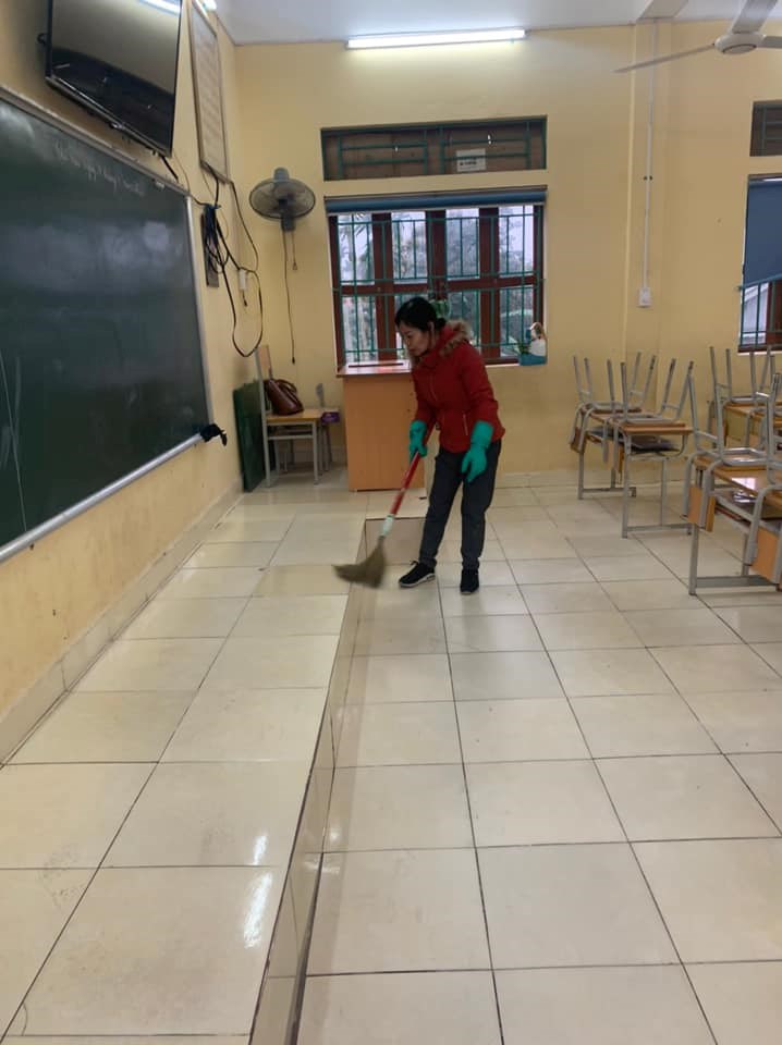 Sau những giây phút được chung vui chúc mừng xuân mới các CBGV, NV nhà trường tổ chức tổng vệ sinh, khử khuẩn trong các phòng học và khuôn viên nhà trường với mong muốn có một môi trường học tập sạch sẽ, an toàn nhất chào đón các em học sinh đến trường.