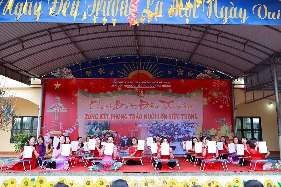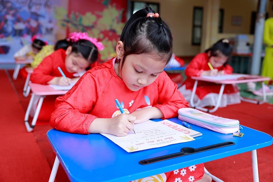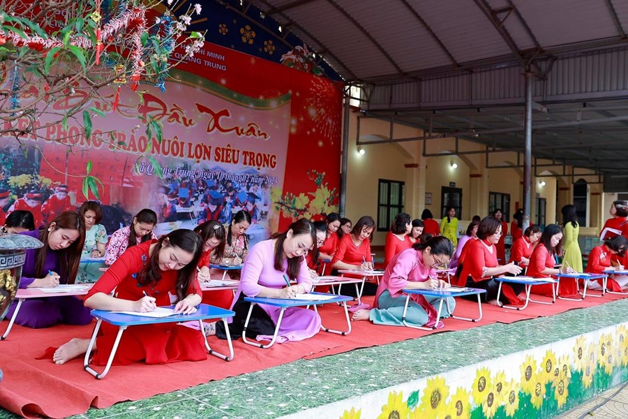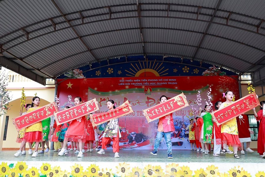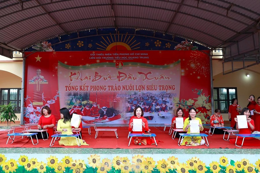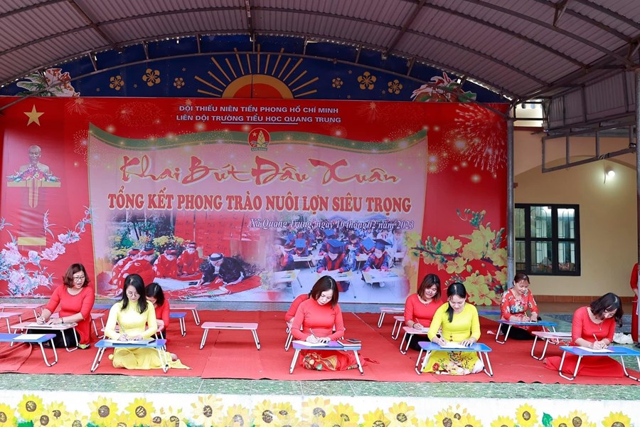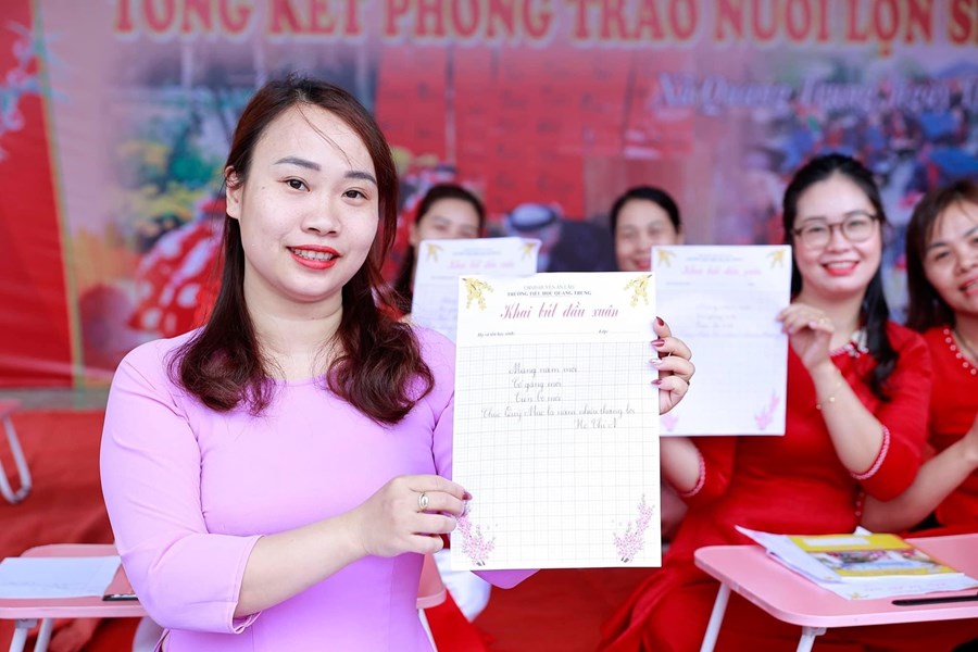 🌺🌺Với các tiết mục văn nghệ vui tươi mang hơi thở của mùa xuân tràn ngập khắp không gian của nhà trường. Các thành cô giáo và các em học sinh toàn trường đều được viết khai bút đầu xuân đề khởi đầu tốt đẹp cho mọi hoạt động, mọi chương trình, mọi kế hoạch thông qua đó gửi gắm trong những nét chữ đầu xuân những ước nguyện của thầy và trò nhà trường về một năm “Thầy dạy tốt - trò rèn chăm” cùng với tâm tư, nguyện vọng về một năm mới hạnh phúc và thành công đến với mọi người, mọi nhà.