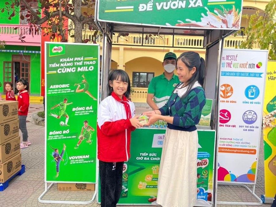 Quà tặng là sữa, bánh và đồ dùng học tập rất cần thiết để tiếp sức cho các em học tập vui chơi đồng thời bổ sung dinh dưỡng cho các em được phát triển mạnh khoẻ. Đây là một hoạt động vô cùng ý nghĩa thể hiện sự quan tâm chung tay cùng toàn xã hội của công ty sữa Nestle MiLo tới sự phát chất thể chất cao lớn, mạnh khoẻ các em học sinh chủ nhân tương lai của đất nước.