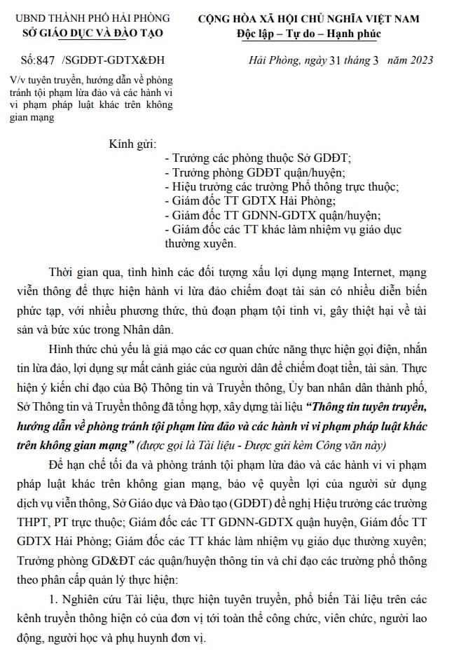Công văn số 847 /SGDĐT - GDTX&ĐH